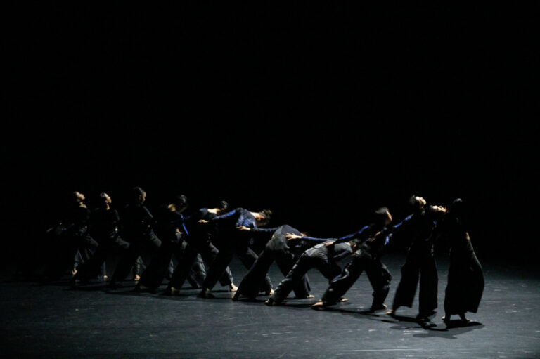 クラウド・ゲイト・ダンスシアターのダンサーたちは、人の身体や空間のなかを移動する「気」の流れや呼吸を意識した身体の使い方を日ごろから学んでいる²。それによって培われた技術であろう、出演者のダンサーたちはみな、自分の身体の部分と部分とが連動する、つながりの感覚を敏感にキャッチするのみならず、その感覚を持続させ、空間的にも広げることに極めて長けているようだ。