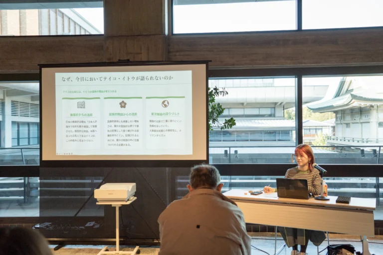 彼女自身のアイデンティティのゆらぎや、舞踊に介入する当時の帝国主義の思想など、様々な要因が舞踊家テイコ・イトウをめぐる「語り」を困難にする。例えば戦後多くの芸術家が、戦中の国家協力の責任を問われたのであり、その文脈で名前を目にする芸術家は多い。いっぽうで舞踊家の足跡は残りづらく、責任追及もほとんどない。それゆえこれまで戦時下の舞踊が主題にされることも少なかった、という議論は示唆深い。テイコ・イトウをとりまく多くの闇が彼女への関心を呼び起こし、本リサーチを魅惑的なものにしていた。